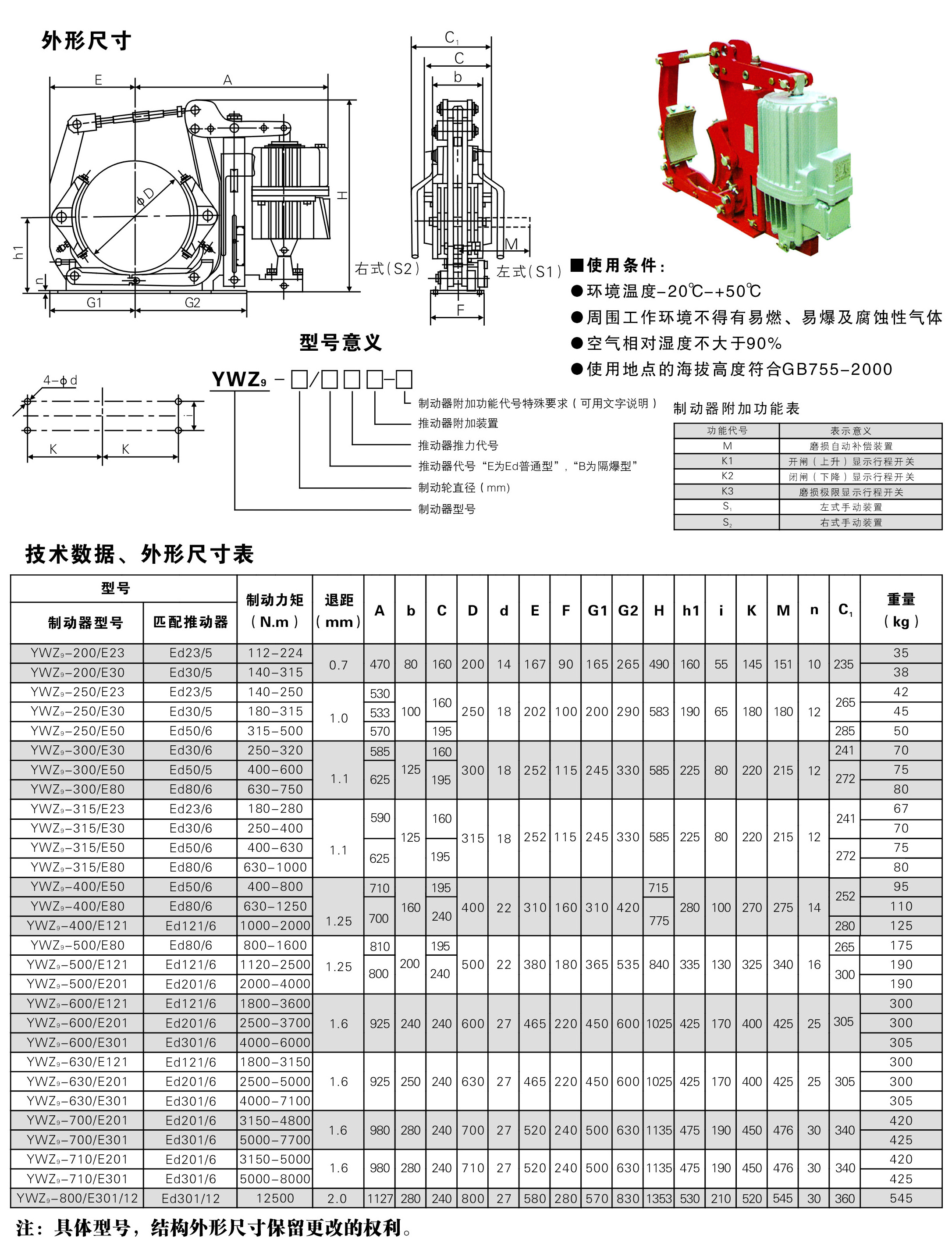 YWZ9電力液壓塊式制動器主要用于起重、運輸、冶金、礦山、港口、建筑機械驅(qū)動裝置的機械制動,具有制動平穩(wěn),安全可靠、維修方便、耗電少、壽命長、無噪音等優(yōu)點。